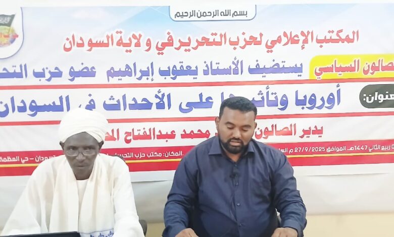 استضاف المكتب الإعلامي لحزب التحرير في ولاية السودان نهار اليوم،بمكتب ببتسودان، الأستاذ يعقوب إبراهيم، عضو حزب التحرير، في حلقة جديد من الصالون السياسي الشهري، تحت عنوان: (أوروبا وتأثيرها على الأحداث في السودان).